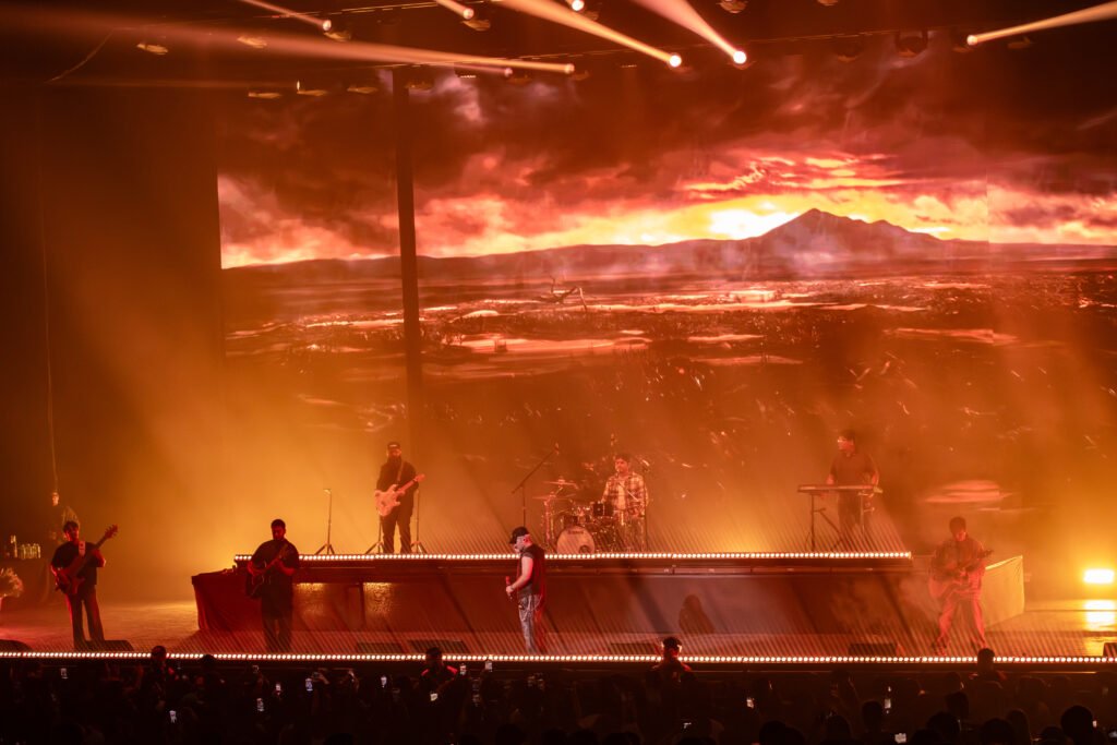 El bloque más intenso llegó con piezas como ‘Te Odio‘, ‘Soy Un P*endejo‘, ‘Tal Vez‘, ‘Diciembre‘ y ‘La Curiosidad‘. Como sorpresa, Macario Martínez se unió a la banda sobre el escenario con ‘Esa Noche‘, antes de cerrar con un tono más romántico en ‘Eres Arte <3‘ y ‘Jugaste y Sufrí‘. El concierto culminó con una lluvia de confeti al ritmo de ‘Hasta La Muerte‘, dejando una despedida inolvidable.