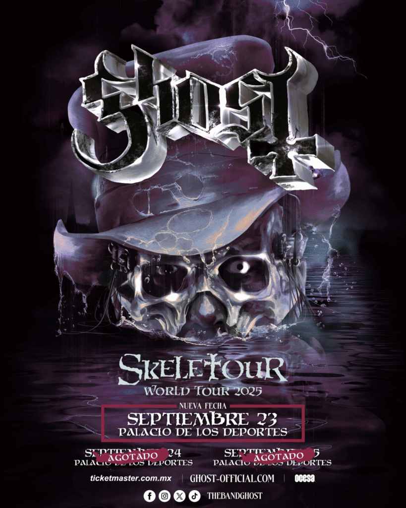En esta ocasión, Ghost llegará con su más reciente producción discográfica, Skeletá (2025), un álbum que refuerza su característico estilo teatral y oscuro, y que ha sido recibido con entusiasmo por la crítica y sus seguidores alrededor del mundo. El espectáculo promete una puesta en escena imponente, cargada de misticismo, energía y la poderosa estética que distingue a la banda.
